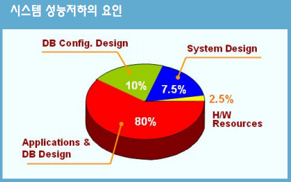 일반적으로 시스템 성능 저하 문제는 잘못된 APP 및 DB 설계에 의해 발생한다.