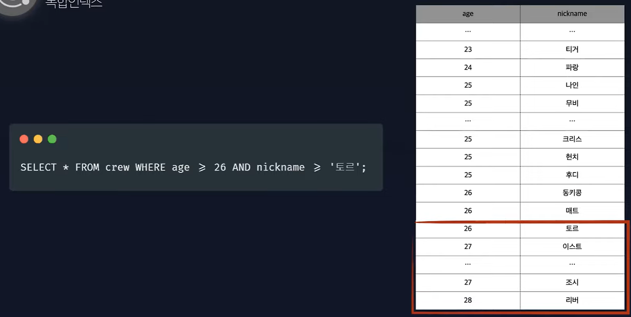 - 두 개 이상의 컬럼을 합쳐서 인덱스를 만드는 것