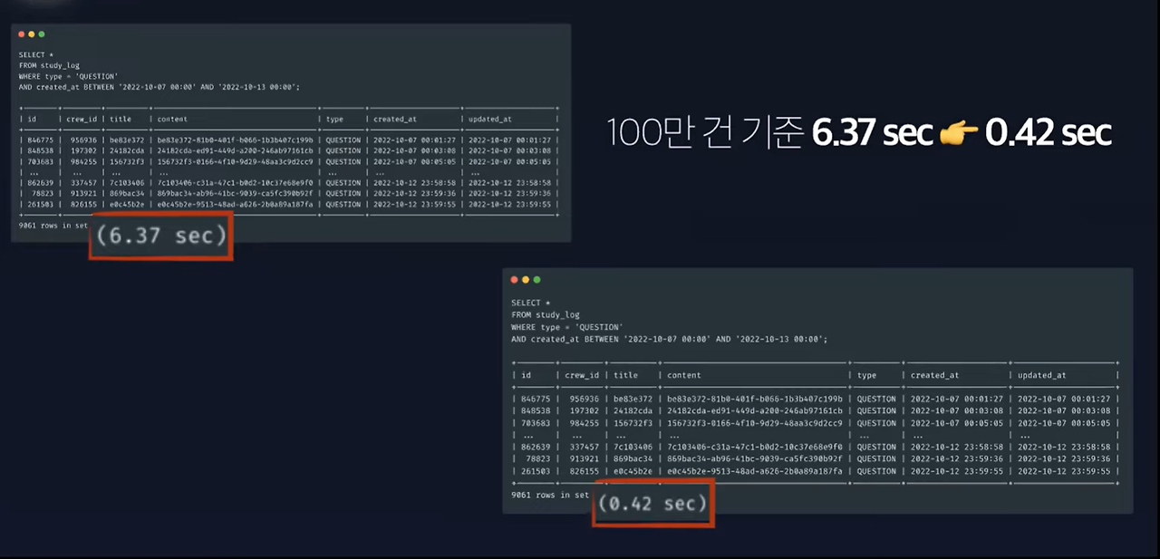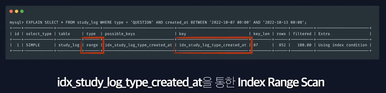 - 이 부분을 복합 인덱스(type, created_at)를 통해 개선할 수 있다.