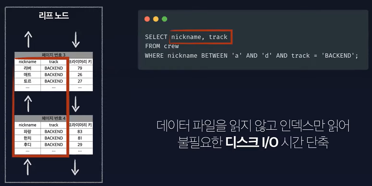 : 인덱스로 설정한 컬럼만 읽어 쿼리를 모두 처리할 수 있는 인덱스