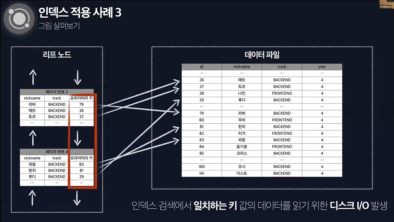 인덱스를 사용하여 처리하는 쿼리 중 가장 큰 부하를 차지하는 부분 -> 인덱스 검색에서 일치하는 키 값의 레코드를 읽는 것