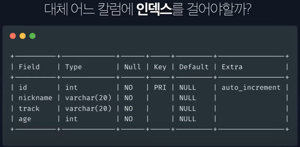 - 카디널리티가 높은 컬럼에 대해 인덱스를 생성